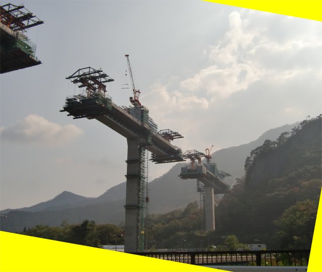 橋だけは完成させる為でしょうか、巨大なクレーンが、