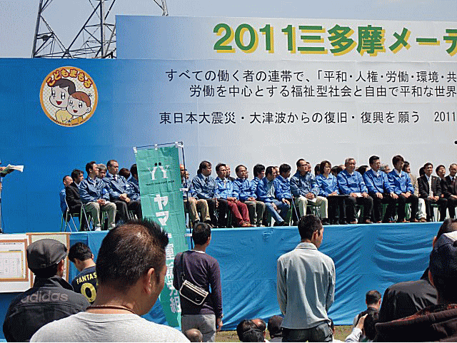 | このメーデーの情報を ご案内を頂いた 副書記長が、会場に居なかったので、 現役執行委員にたずねたところ、 被災地ボランティアに行っている・・ とのことでした。 敬意を表して、昨年のメーデーの時に 撮ったお写真を、クローズアップ・拡大 して、右に 掲載致しました。 この若者が その副書記長です。→ 昨年は、めずらしい芸?を見せて くれていました。 この写真は、その時の写真です。 皆さん、副書記長への応援、宜しく お願い申し上げます。 お名前、連絡先は、事務局まで・・ |