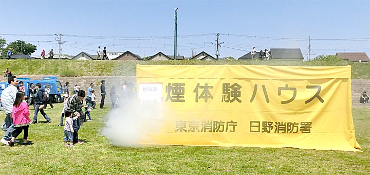 煙体験ハウス では、5組くらいの親子が 並んで 順番を待っていました。