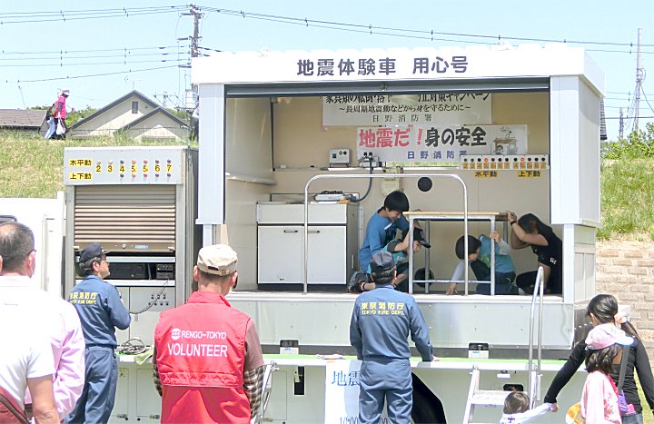 地震体験車↑には 子供を中心に 10人以上が 並んでいました。