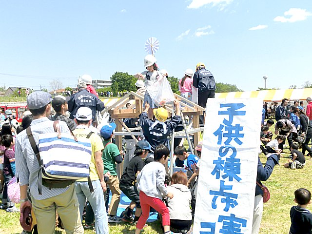 建設ユニオンは、棟上式を 子供用に アレンジしていました。