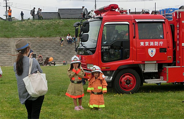 こどもひろばでは、今年も・・・ 消防車、軌震車 等が・・・