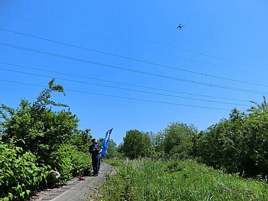 こんなに狭い場所から飛ばしていました・・・このサイズでは、人が多い場所の