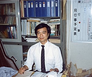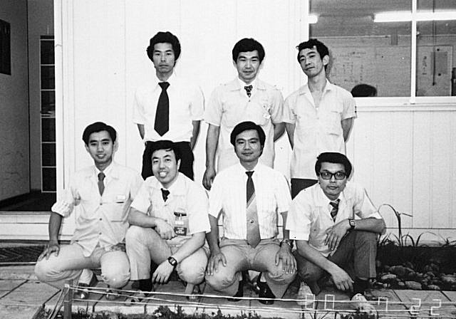 議案書用の写真でしょうね、羽村の昔の事務所(平屋)の前です。