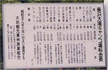 場所は、篠沢大滝キャンプ場 と書いてあります。
