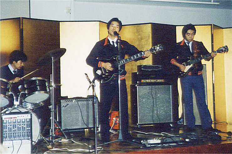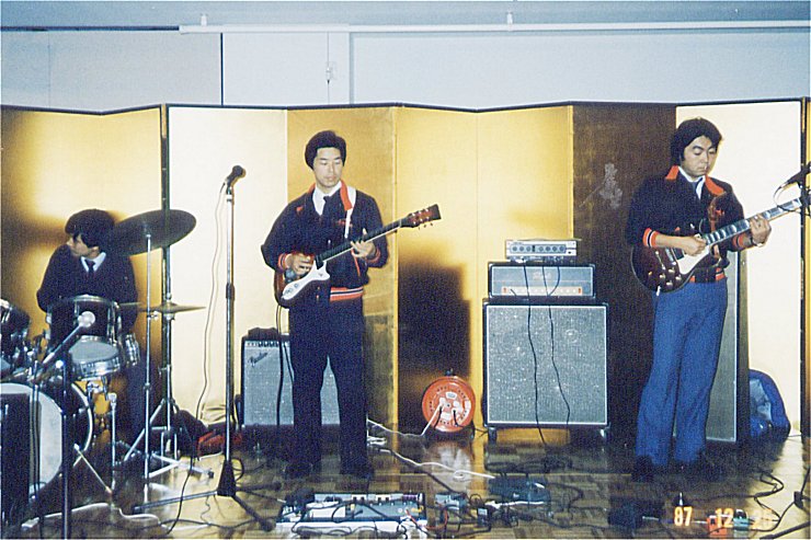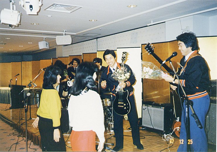 羽村の事務所に残っていた 思い出の写真を、紹介します。 1987年12月15日、関係者の あてになる?記憶によると、立川のグランドホテルで開催された、 ダンス パーティー です。 金屏風の前で演奏する サンタマバンド ・・・かっこい〜ぃ! ・ 皆さんがお持ちの、お宝写真 良ければ、ここに掲載します。 送ってください。 待ってまぁーす。 2000年以前の記録 に戻る
