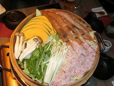 私達のテーブルには、エビがダメな人と、