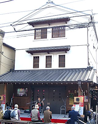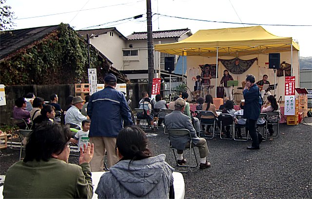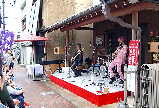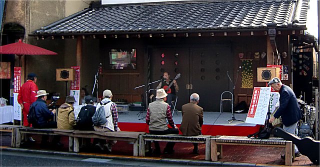 | 更に青梅寄り 蔵の前 (軒先フォーク ステージ?) の会場です。 こちらは、 一人の方が 頑張って いました。 |