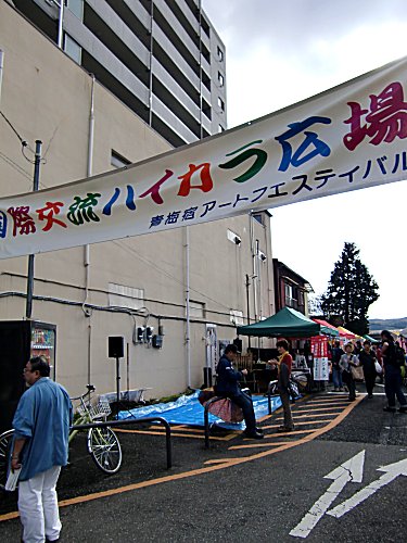 駅前の駐車場は、国際交流ハイカラ広場 になっていました。