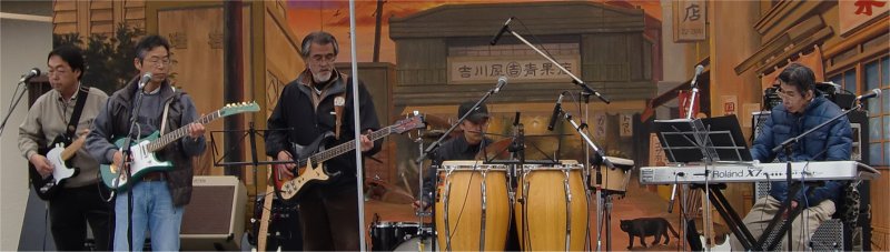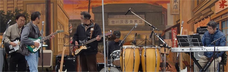 勝沼3丁目の夕日ステージ で、サンタマ メンバーが、