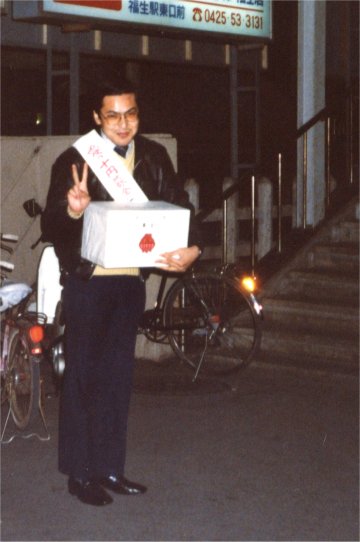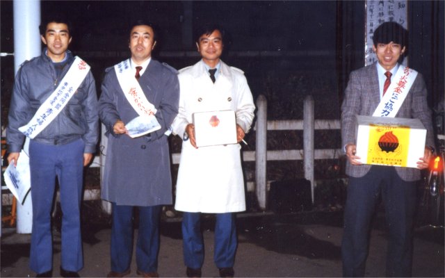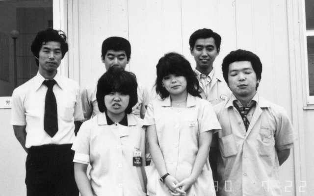 1980年7月22日 羽村 旧組合事務所前で、羽村 青婦メンバー