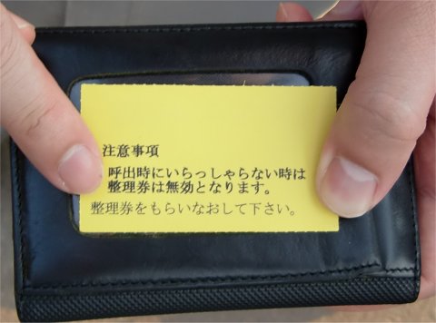 呼び出しの時に居ないと、整理券は無効だそうです。
